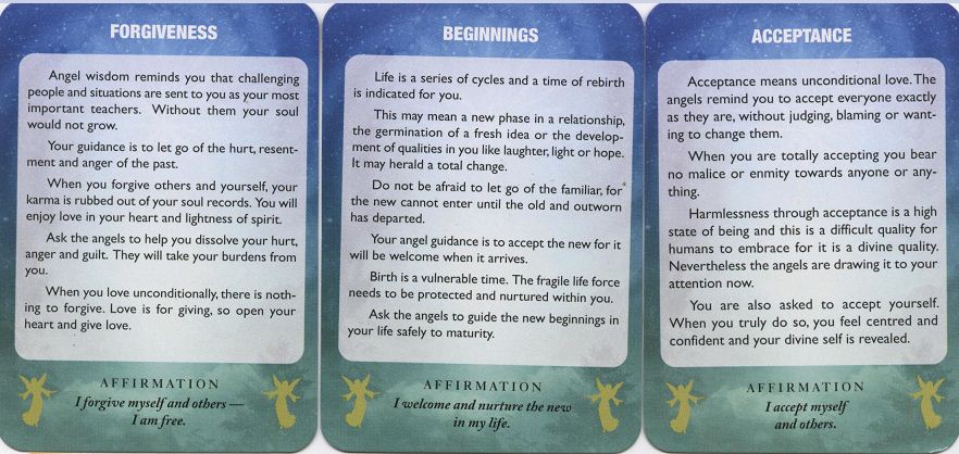 Cada carta tem uma mensagem específica de um Anjo específico.